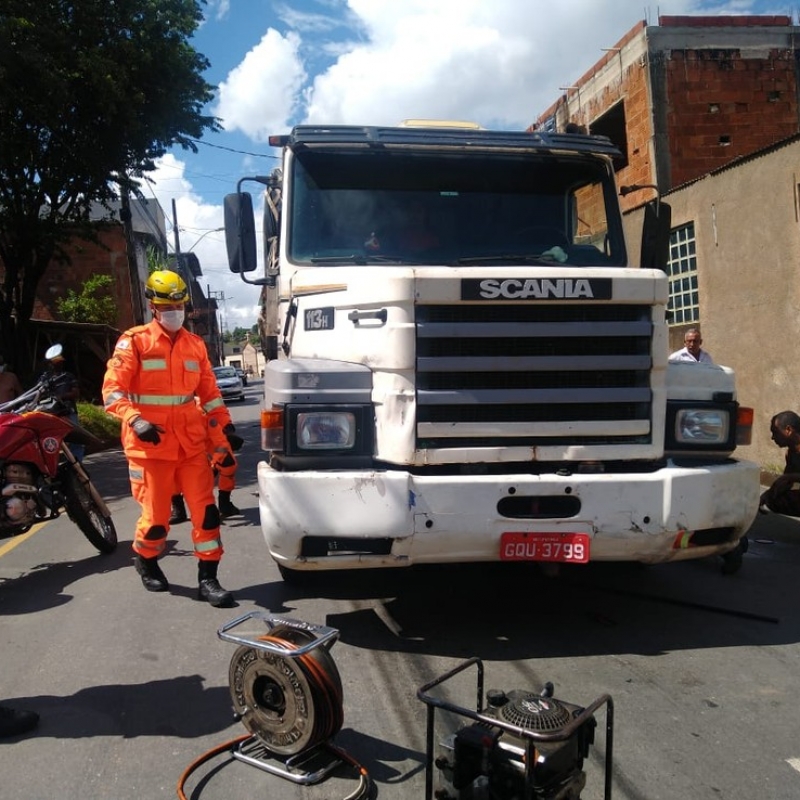 Um adolescente de 14 anos ficou ferido após ser atropelado por um caminhão nesta segunda-feira (8), em Timóteo. Ele precisou ser socorrido pelo Corpo de Bombeiros e Samu, pois ficou preso embaixo do veículo.