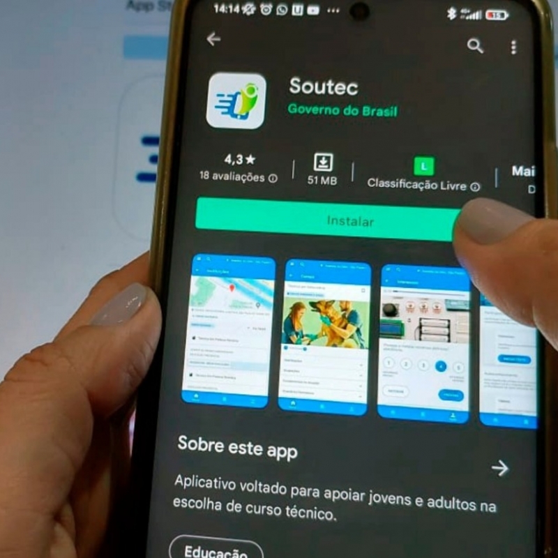 O SouTEC, aplicativo lançado pelo Ministério da Educação (MEC), tem o objetivo de auxiliar os estudantes a encontrar um caminho profissional de acordo com seu perfil. O aplicativo pode ser baixado gratuitamente em celulares android ou apple. Não é necessário ter internet para fazer os testes e ler os artigos disponíveis no app.