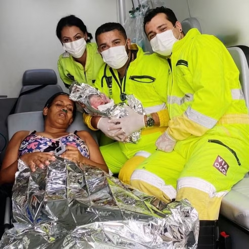 A equipe de resgate foi acionada e, assim que a mulher entrou na ambulância, teve o parto realizado por dois socorristas, com o apoio do motorista da concessionária.