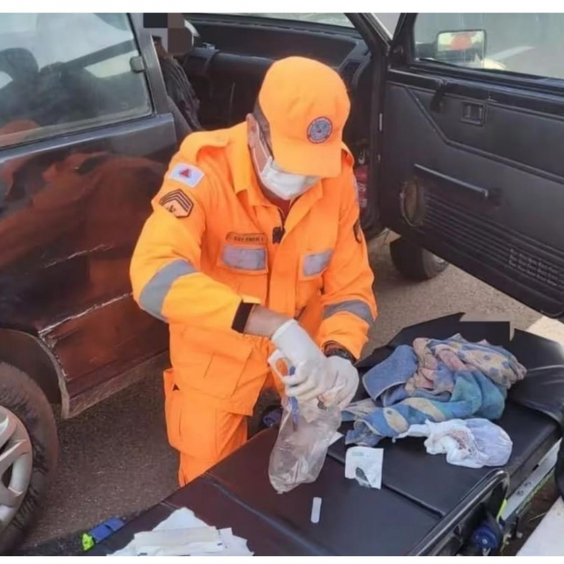 Os militares pararam para prestarem o auxílio e constataram que um bebê do sexo masculino tinha acabado de nascer. O parto ocorreu dentro do carro, no banco do passageiro, onde a mulher estava sentada.