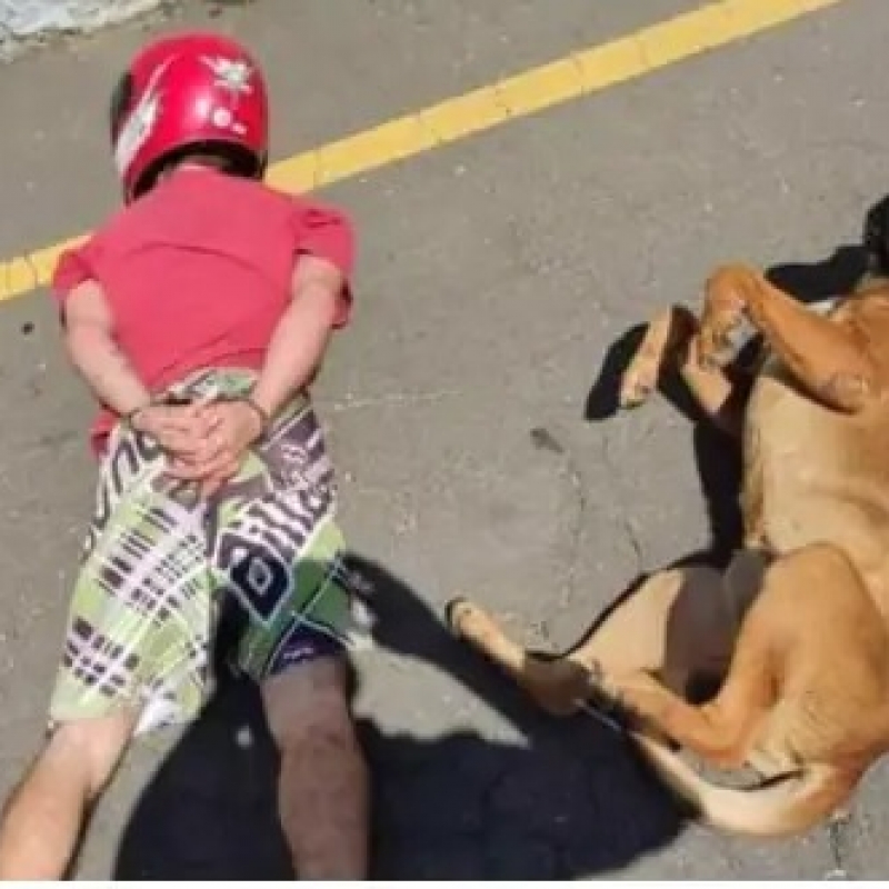 Um dos policiais envolvidos na ação disse que o cão não era conhecido dos rapazes. Mas, ao ver os dois deitados no chão e algemados, o animal também se lançou na rua e encolheu as patas. A cena viralizou nas redes sociais.
