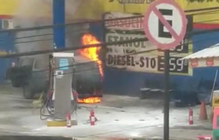 Na tarde deste domingo (23), uma Volkswagen Kombi pegou fogo em um posto de combustível, localizado na rua Epaminondas Otoni, no centro de Teófilo Otoni.