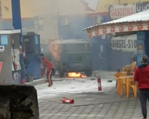 Carro pega fogo em posto de combustível no centro de Teófilo Otoni