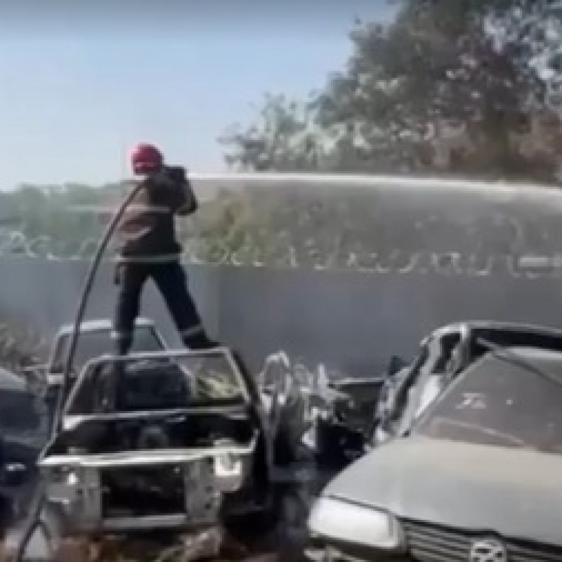 Um incêndio destruiu 16 carros que estavam em um pátio de uma loja de peças usadas, nessa segunda-feira (2), em Caratinga. O combate ao fogo durou aproximadamente uma hora.