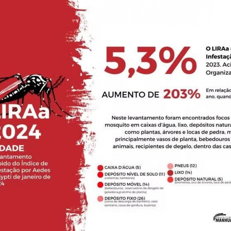 AEDES AEGYPTI | A prefeitura de Manhuaçu divulgou nesta segunda-feira (29), o primeiro Levantamento Rápido do Índice de Infestação por Aedes aegypti (LIRAa) de 2023.