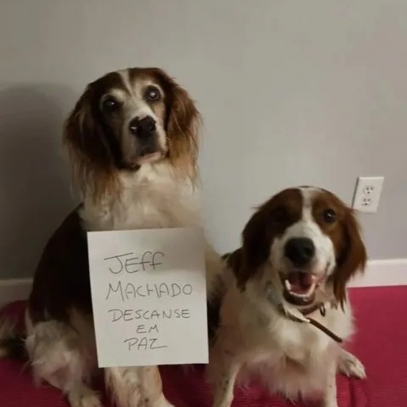 O ator Jeff Machado foi homenageado pelos seus cães no perfil do Instagram que o ator mantinha para registrar a rotina dos animais.