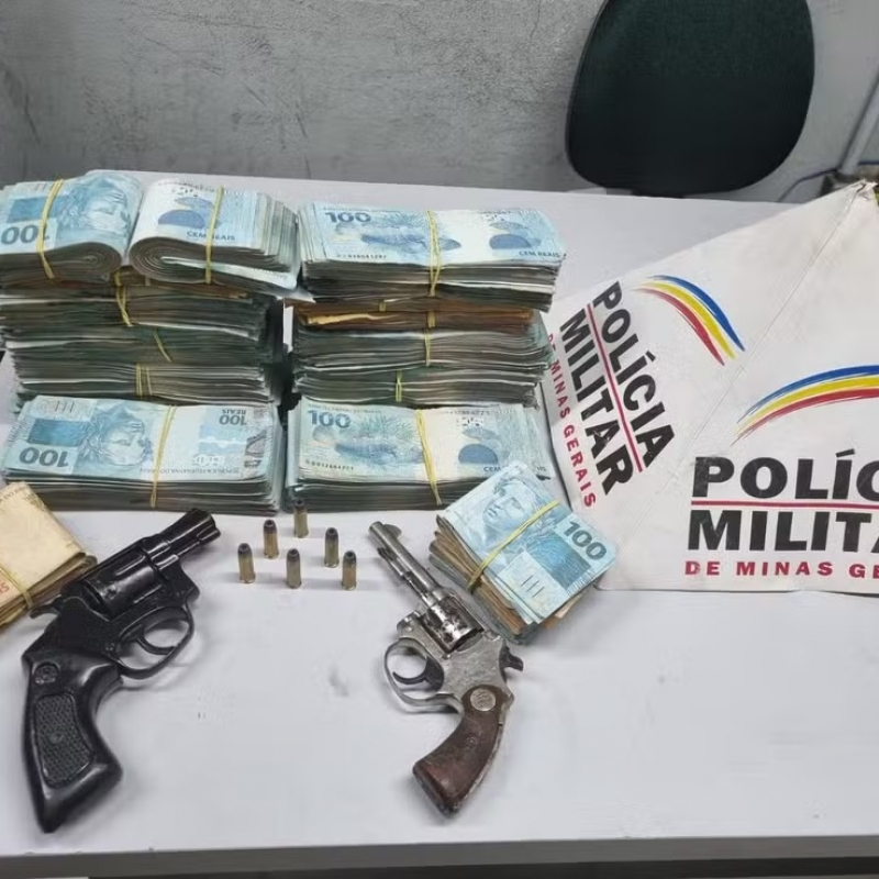 As armas, as munições e o dinheiro foram apreendidos, e a motocicleta usada pelo homem foi levada para um pátio credenciado.