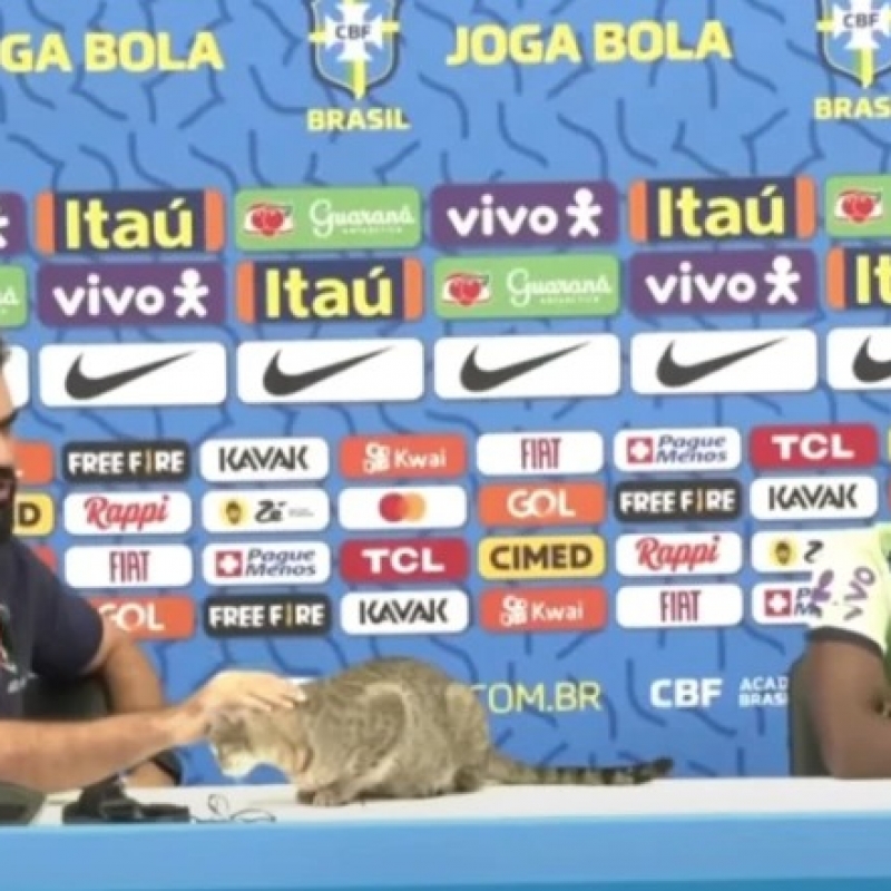 Durante a coletiva do atacante, o assessor da CBF, Vinicius Rodrigues, pegou o gato pela pele do dorso e o retirou do local. O episódio foi criticado por usuários das redes sociais.