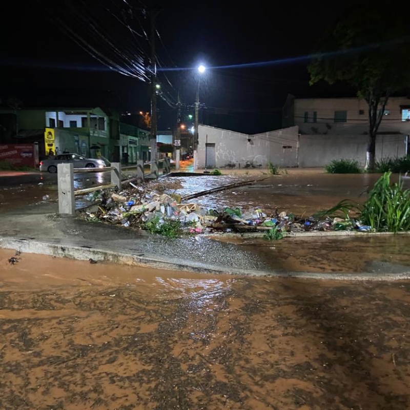 O rio Todos Os Santos não suportou a quantidade de água que caiu na noite desta quinta-feira (24/11) em Teófilo Otoni e transbordou.