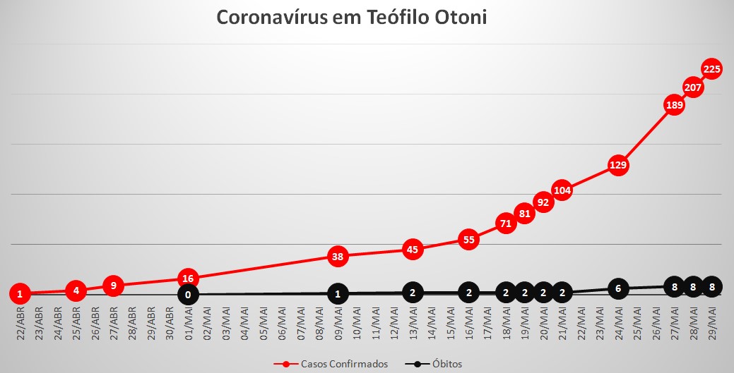 A Secretaria Municipal de Saúde atualizou nesta sexta-feira (29) os dados do novo Coronavírus em Teófilo Otoni. A cidade não bate um novo recorde na divulgação dos casos desde a última quarta. Ontem a cidade ultrapassou a casa dos 200 casos, chegando hoje ao acúmulo de 225 casos.