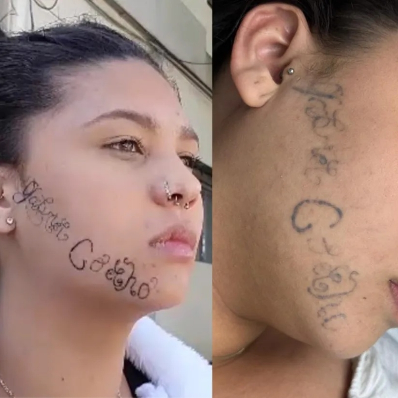 TRISTEZA | Um ano após ter o rosto tatuado à força pelo ex-namorado, a jovem Tayane Caldas, de 19 anos, segue fazendo sessões de laser para tentar remover a tatuagem. O caso dela ganhou repercussão nacional em maio de 2022, ao expor o sequestro e violência que sofreu em Taubaté (SP).