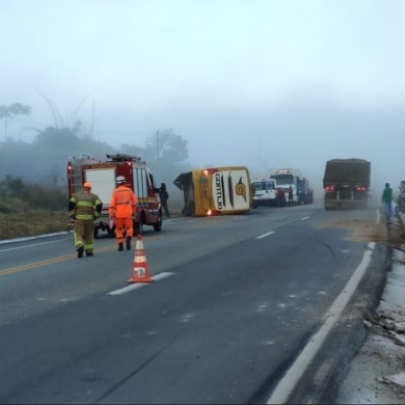 De acordo com a corporação, o acidente aconteceu às 4h da manhã, na altura do Km 317, e fechou a via no sentido Ipatinga. Conforme a Polícia Rodoviária Federal, que também atende a ocorrência, o coletivo, que contava com 13 passageiros e o motorista, seguia de Governador Valadares, no Leste do Estado, para Belo Horizonte.
