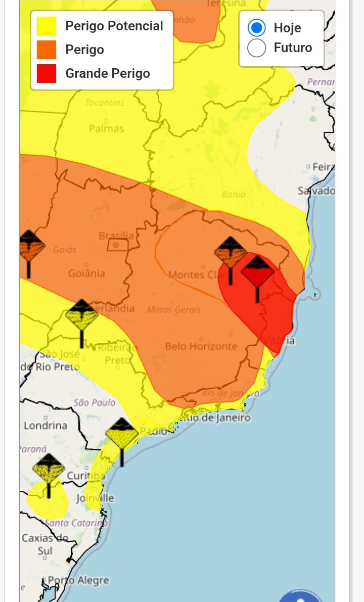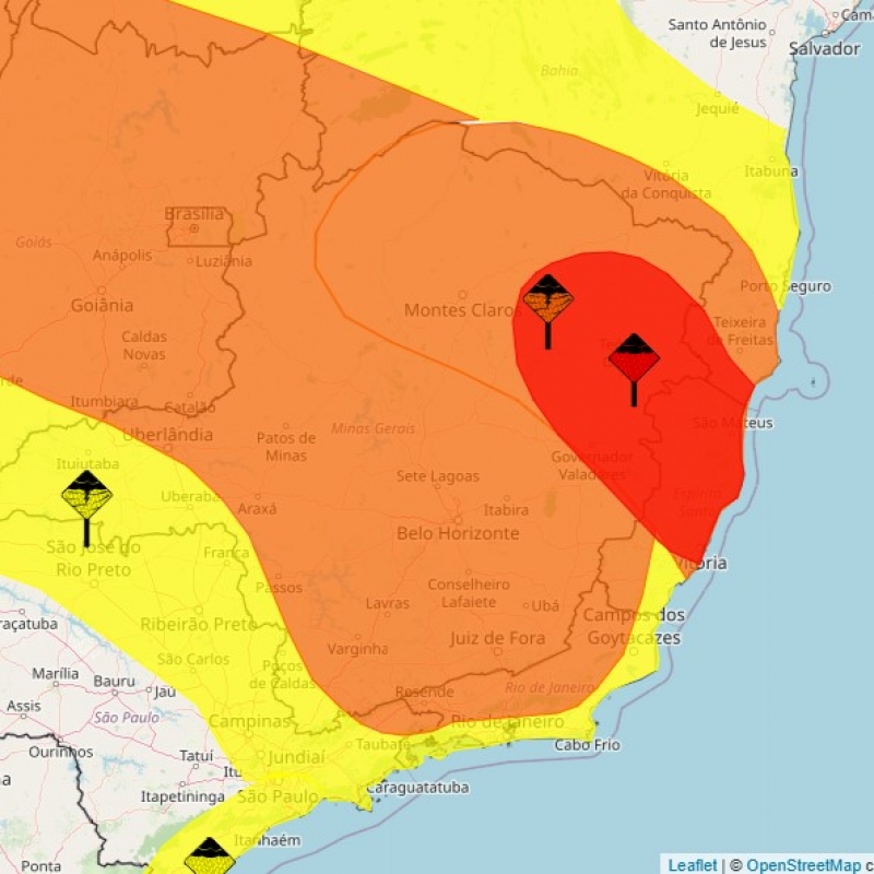 Chuva superior a 60 mm/h ou acima de 100 mm/dia. Grande risco de grandes alagamentos e transbordamentos de rios, grandes deslizamentos de encostas, em cidades com tais áreas de risco.