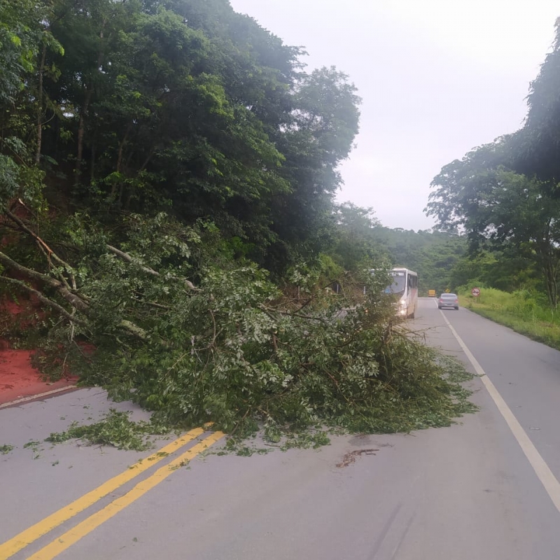 Com o forte temporal que atingiu toda a região na noite desta terça-feira (15/02), uma árvore caiu na BR-116, deixando o trânsito parcialmente interditado em três pontos da rodovia, próximo ao KM 252.