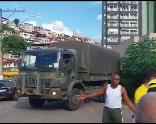 Um dos policiais envolvidos na ação disse que o cão não era conhecido dos rapazes. Mas, ao ver os dois deitados no chão e algemados, o animal também se lançou na rua e encolheu as patas. A cena viralizou nas redes sociais.