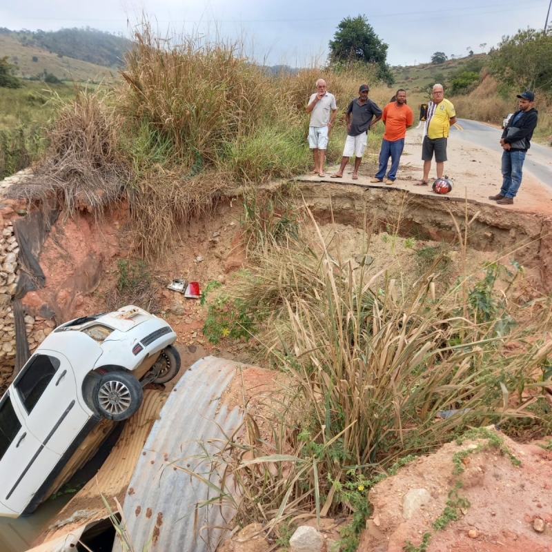 SUSTO | Um veículo com três pessoas caiu em um trecho reformado pelo DER – Departamento de Edificações e Rodagens de Minas Gerais, na região de Pavão, na MG-205.