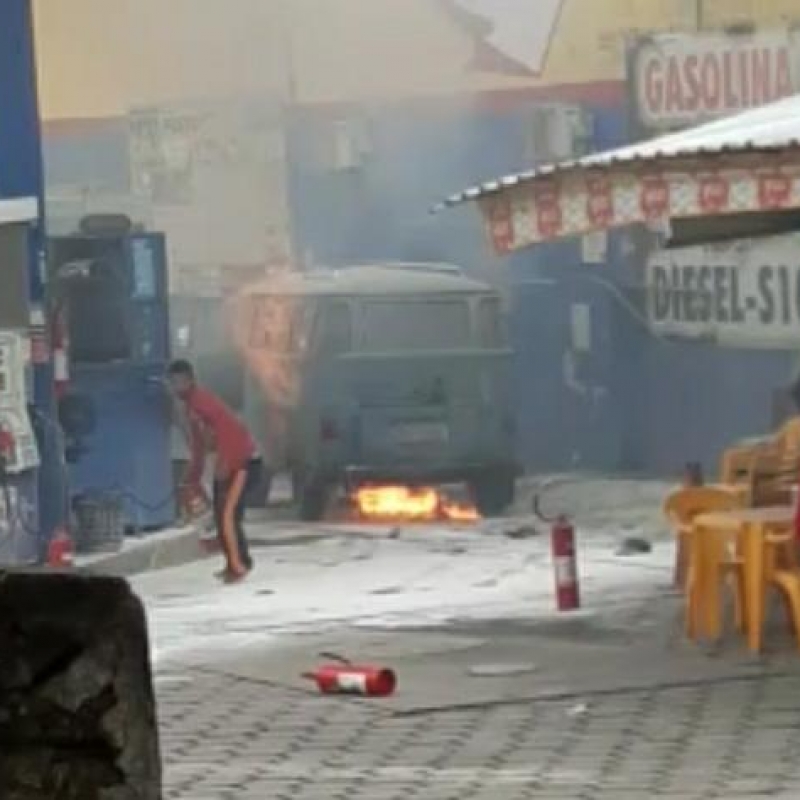 Na tarde deste domingo (23), uma Volkswagen Kombi pegou fogo em um posto de combustível, localizado na rua Epaminondas Otoni, no centro de Teófilo Otoni.