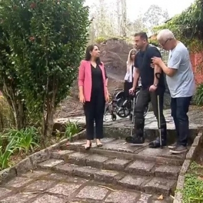 Sidney Sampaio surge de muletas e revela motivo de queda em hotel