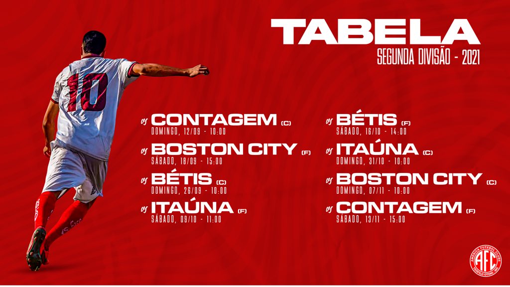 A esteia para o América de Teófilo Otoni na série C do Mineiro 2021 (segunda divisão) está prevista para o dia 12 de setembro, contra a equipe do Contagem, no estádio Nassari Mattar, em Teófilo Otoni. Veja a tabela completa: