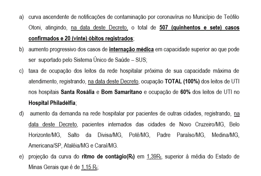 Vale ressaltar que, Teófilo Otoni já consta, segundo último boletim epidemiológico atualizado neste domingo (15), 509 casos confirmados de covid-19 e 20 óbitos.