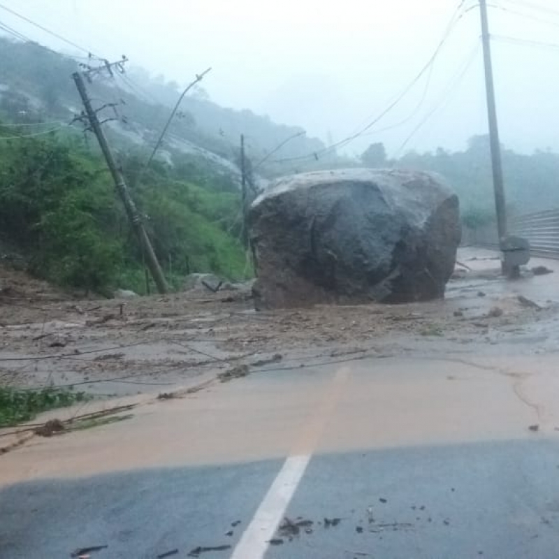 Segundo os Bombeiros, uma equipe da Cemig precisou ser acionada porque uma grande rocha que se desprendeu acabou atingindo um poste de energia, que caiu sobre a pista.