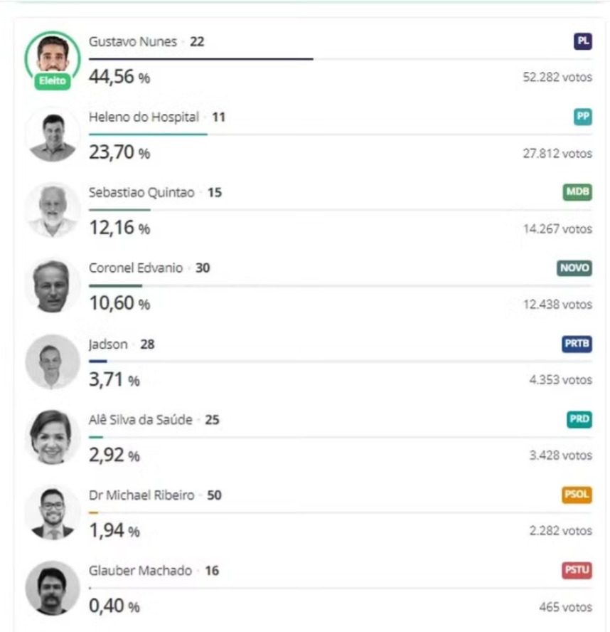 Com 52.282 votos, Gustavo Nunes, do PL, foi reeleito prefeito de Ipatinga, neste domingo (6). O resultado saiu antes mesmo da apuração total das urnas, neste domingo (6). O vice dele é o Pedrão da AAPI, do Cidadania.