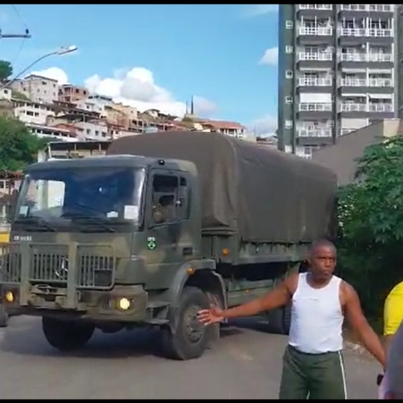 Pelo menos quatro caminhões do Exército Brasileiro chegaram ao Tiro de Guerra 04-018, na José Paulo de Carvalho, no Altino Barbosa em Teófilo Otoni, na tarde desta terça-feira (29/11).