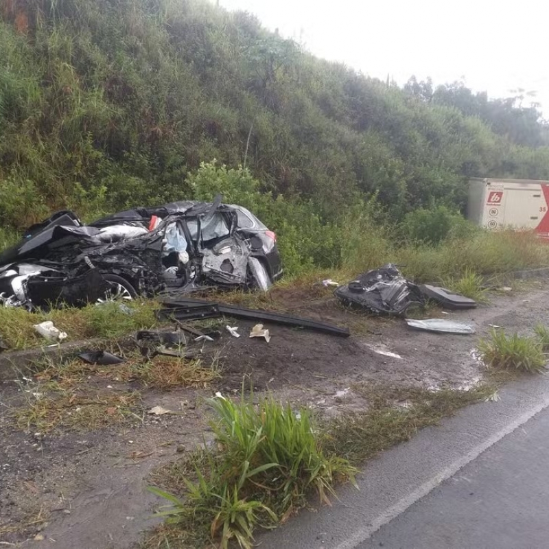 Ele então pisou no freio para reduzir a velocidade, no entanto, por causa da pista escorregadia, o caminhão perdeu o controle, invadiu a contramão e atingiu o carro. Com o impacto, os dois veículos foram parar em uma área de mata, à margem da via. No carro havia um homem e três crianças. O condutor que segundo a PMRv, é tenente-coronel da Polícia Militar. Ele ficou preso às ferragens. A criança gravemente ferida, é filho dele. Os bombeiros fizeram o desencarceramento do motorista que foi levado pelo SAMU para o Hospital Santa Rosália inconsciente e em estado grave. A criança também foi levada para a unidade.