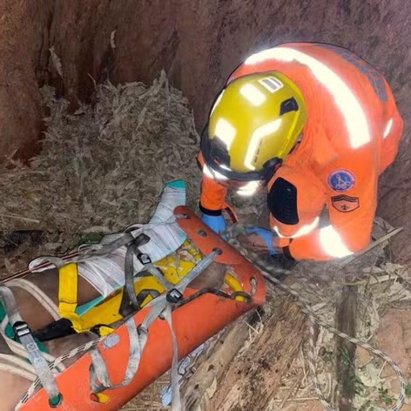 Após retirada, a vítima foi transportada por cerca de 70 metros e foi entregue à equipe do SAMU, que continuou com os atendimentos de estabilização.