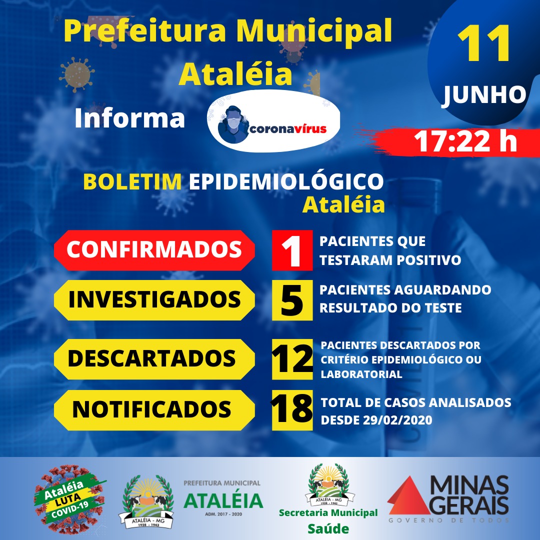 No final da tarde desta quinta-feira (11), a prefeitura de Ataléia por meio da Secretaria municipal de Saúde confirmou o primeiro paciente contaminado pelo novo coronavírus na cidade. A secretaria não trouxe detalhes do(a) paciente.