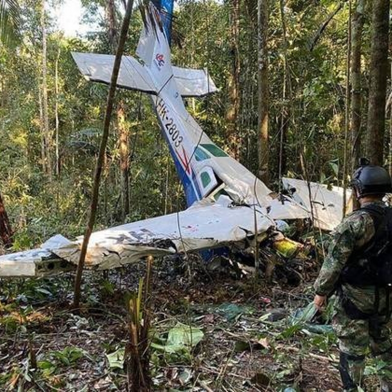 Entre 15 e 16 de maio, soldados encontraram, no sul do departamento (estado) de Caquetá, os corpos do piloto e dos outros dois adultos. A pequena aeronave ficou presa entre árvores com a frente destruída. Não havia notícias das crianças. Um cachorro treinado encontrou uma mamadeira em um ponto afastado do local do acidente. Floresta adentro, foram encontrados sapatos, roupas e uma fruta mordida