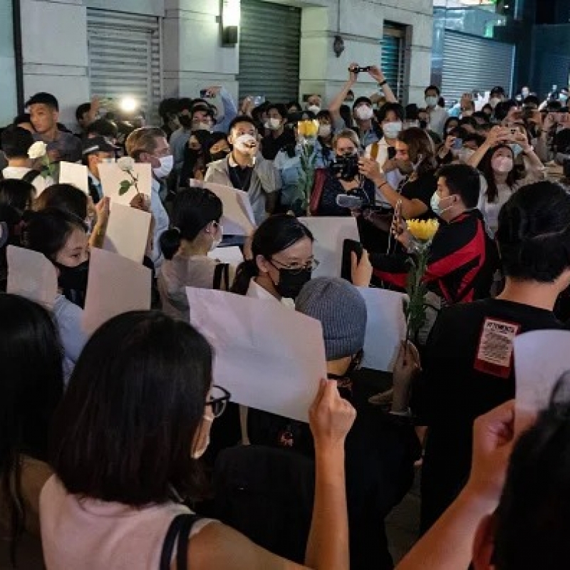 “Sem testes de covid, queremos comer!”, gritavam os manifestantes. “Não queremos covid zero, queremos liberdade”, diziam outros; alguns até chegaram a pedir a renúncia de Xi Jinping