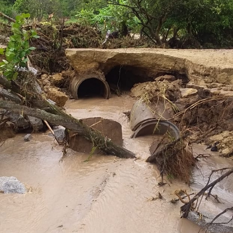Uma ponte que dá acesso à comunidade de Itamunheque, zona rural de Teófilo Otoni, ficou totalmente destruída com as fortes chuvas que atingem a cidade desde a última terça-feira (22/11).
