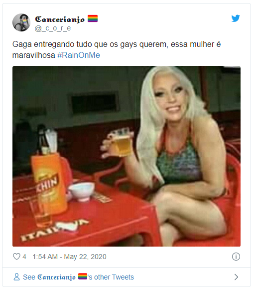 Fã de Lady Gaga desde a sua infância, Ariana revelou poucas horas antes do lançamento de "Rain On Me" que hoje se trata de um dia especial. "Um dia realmente emocionante. Queria poder abraçá-la agora Lady Gaga", escreveu no Twitter a voz do sucesso "Thank U, Next".