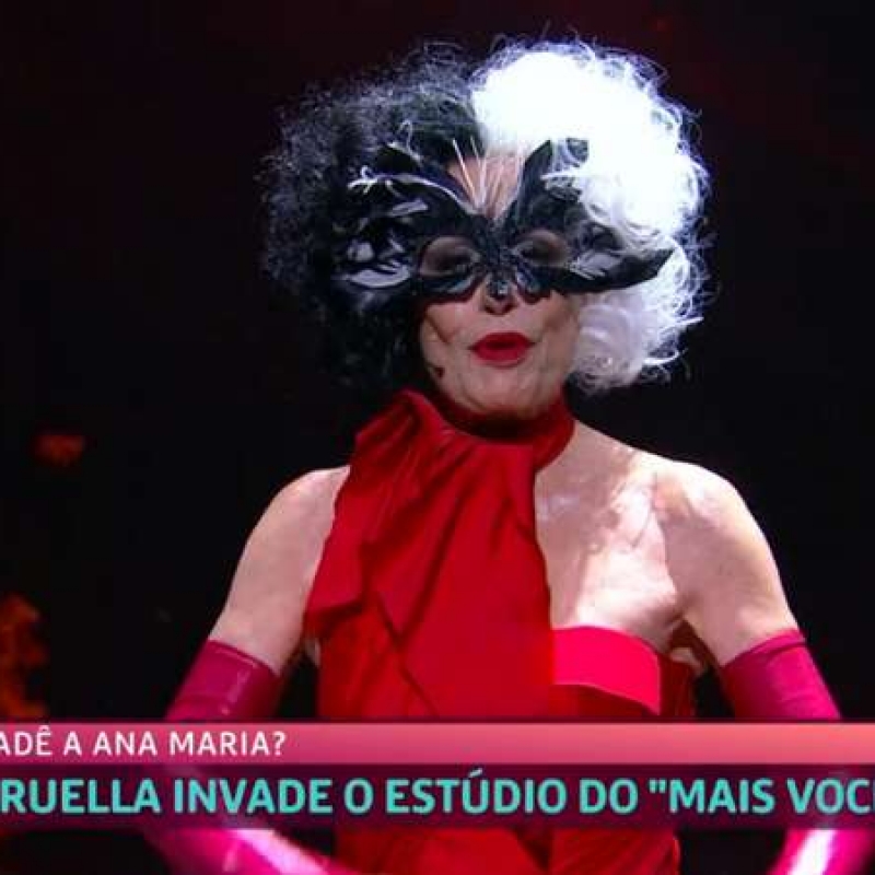 Ana estava vestida de Cruella, clássica vilã da Disney. "Esse vestido foi feito com 12 metros de tafetá de seda pura. O modelo é confortável, embora possa não parecer. Fizemos três provas e estou completamente à vontade", afirmou a apresentadora, contando que o look é assinado pela estilista Mychelle X. "A cauda tem um metro, mas é levinho. Levou um mês para ficar pronto", detalhou.