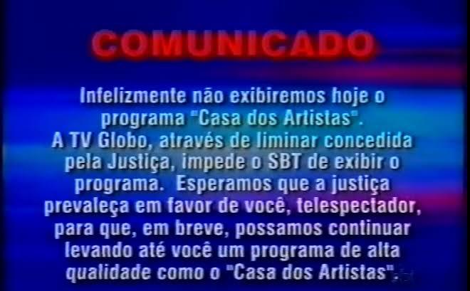 Logo, isso se tornou uma grande polêmica entre as emissoras. Sendo que alguns dias depois, a Globo “declarou guerra” ao SBT de forma definitiva, ao entrar com uma liminar, e conseguir, através da Justiça de São Paulo, que o reality fosse retirado do ar.